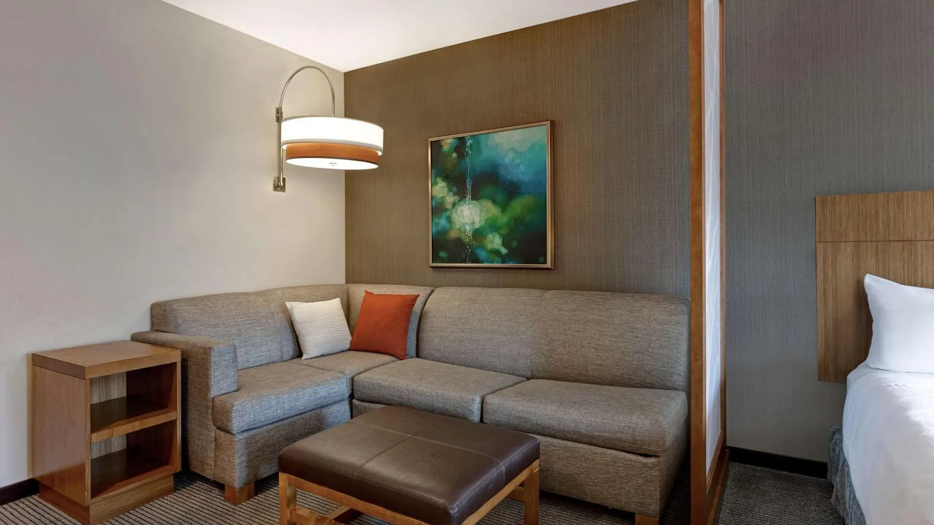 The allergy-friendly rooms of Hyatt Place Bloomington / Normal hotel have an iron with ironing board and climate control along with coffee and tea makers. The accommodation has elegant furniture and carpet flooring. Bathrooms, equipped with a separate toilet and a shower, also feature a hair dryer and free toiletries.